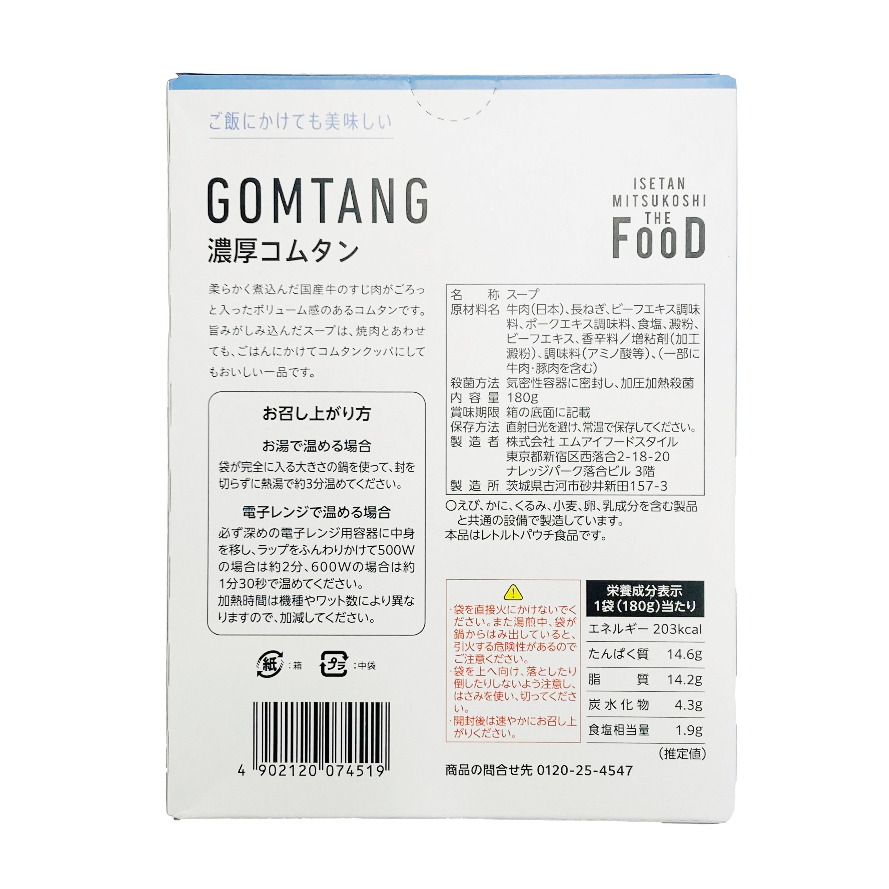 | 濃厚コムタン | 180g | 1個 |