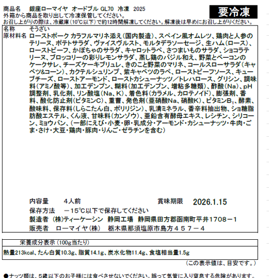 【配送限定】 【12月29日または30日お届け】銀座ローマイヤ 洋風オードブル 配送は関東1都6県(離島除く)限定