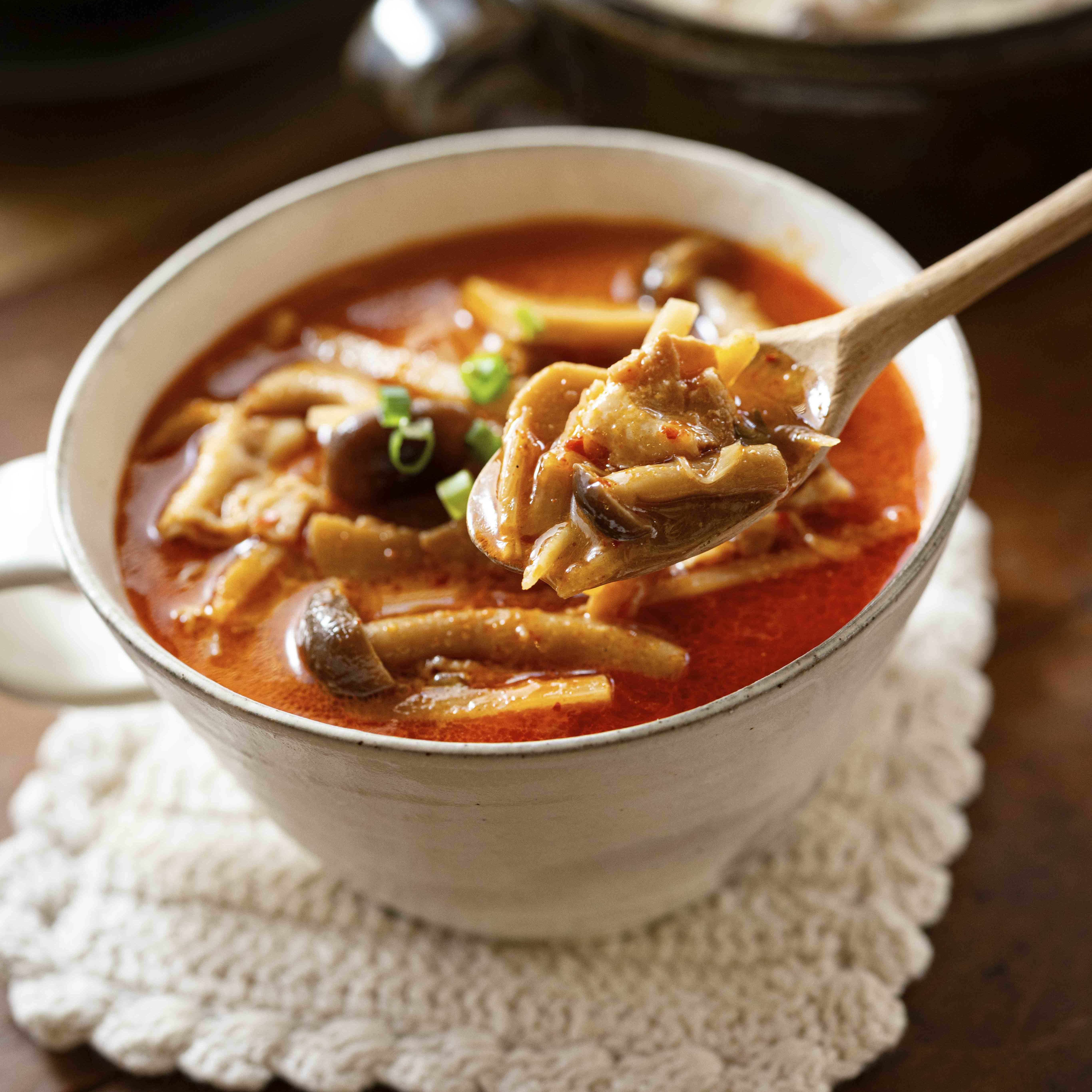豚バラときのこのピリ辛煮込みスープ