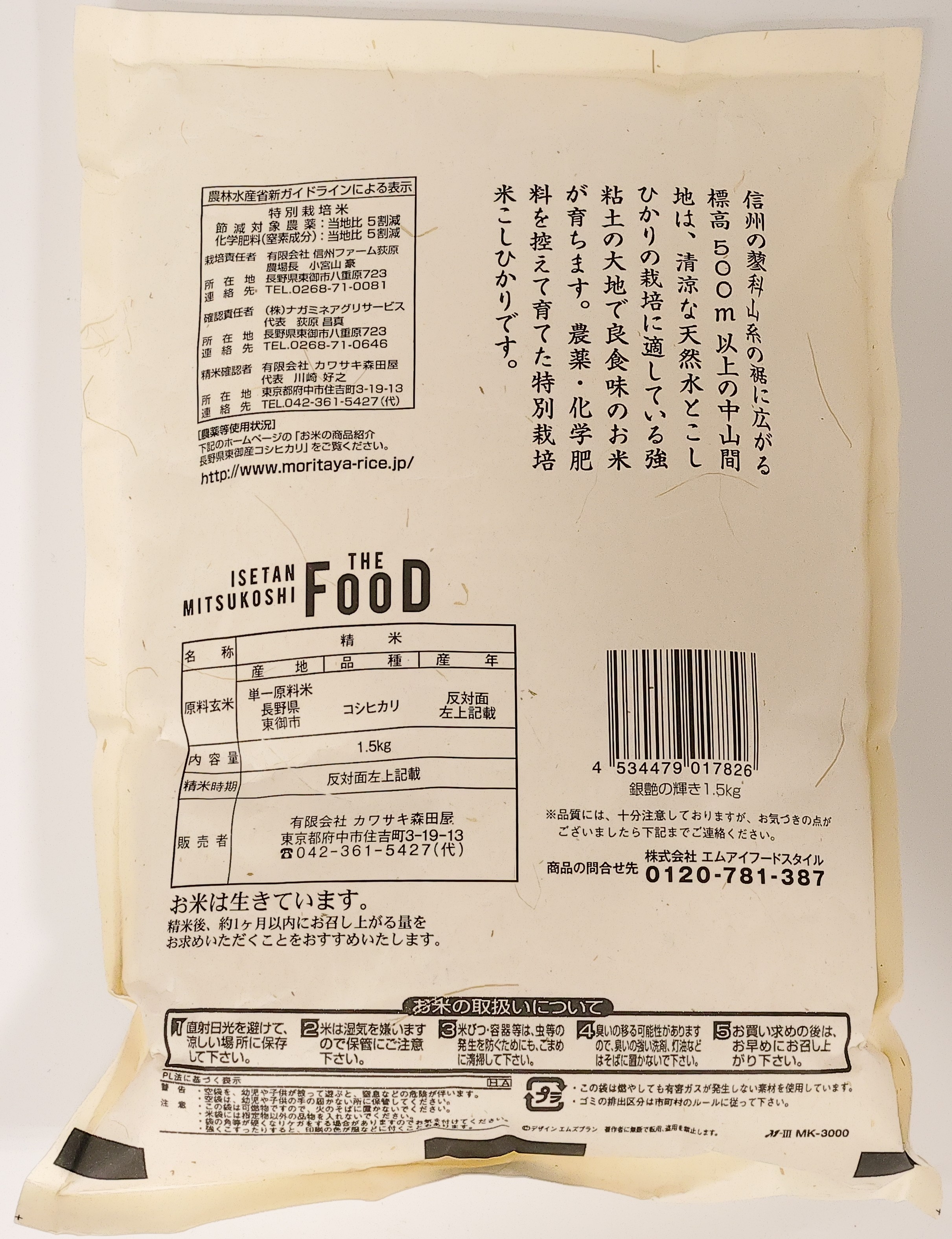 ・TF長野県東卸産特別栽培米こしひかり1.5kg