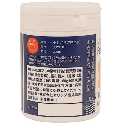 原材料名:鰹荒節(鹿児島県指宿製造)、昆布粉末(昆布(北海道南産))