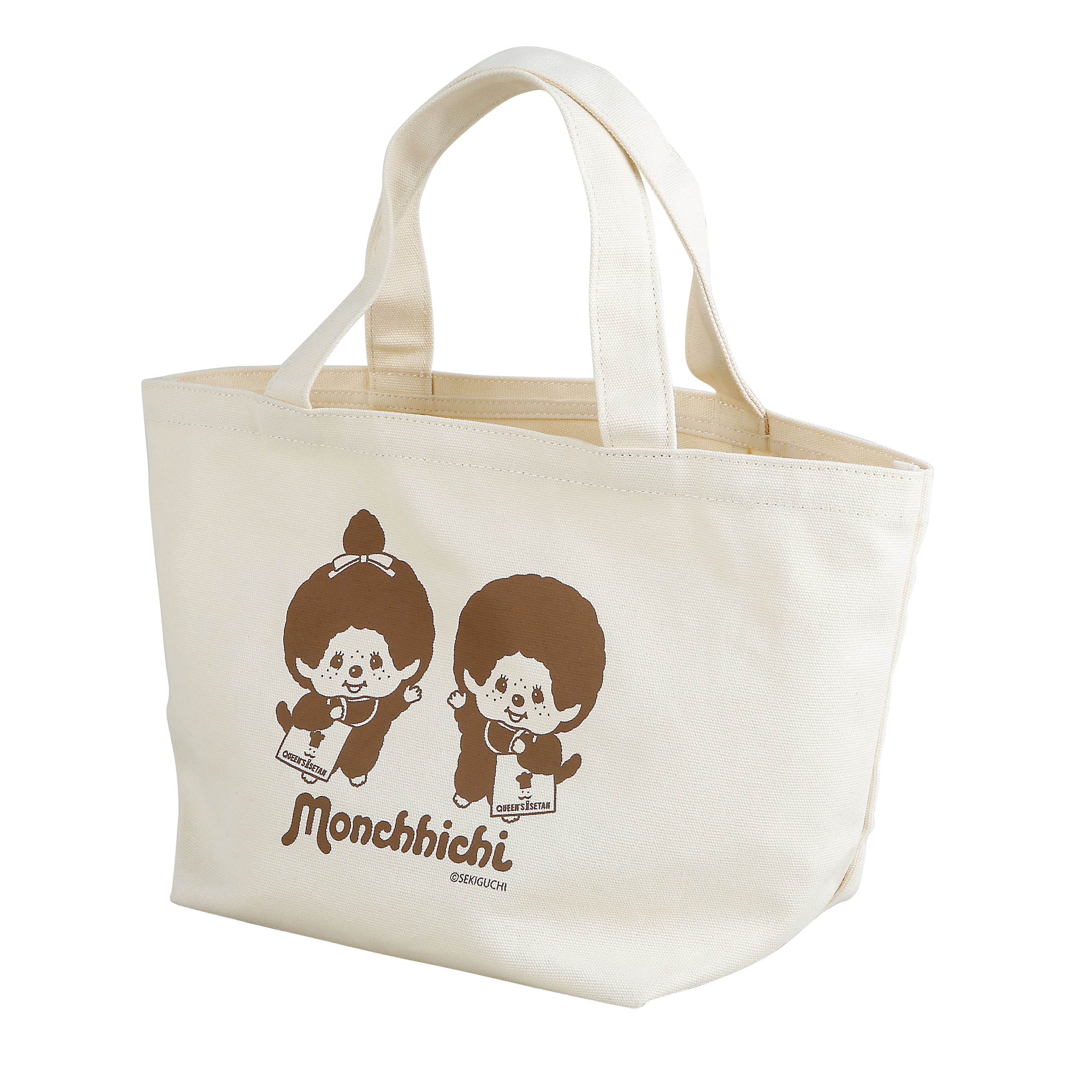 店舗にて購入。 モンチッチ可愛いです。 広げてみると、マチもしっかりあり思っていたより色々と入りました。 サブバッグとして使おうと思っていましたが、財布・スマホ・飲み物・タオル・ポーチ等を入れても余裕なので、このバッグ1つで大丈夫そうです。 色がベージュで汚さない様に気をつけなければいけないのと、上部にチャックや閉じれるポッチが付いていないので☆4つ。大事に使います。